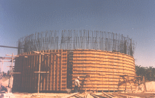 Construction of a reinforced concrete elevated reservoir with a capacity of 8000 m3.